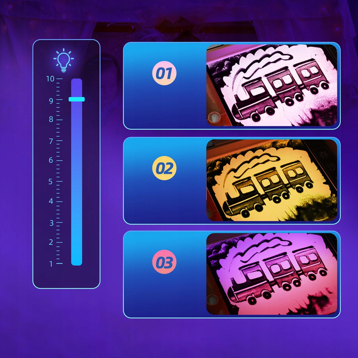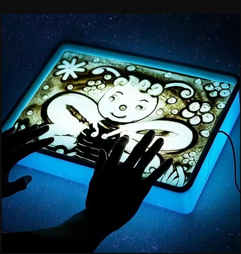 Zestaw do malowania piaskiem pozwoli Twojemu dziecku tworzyć niezwykłe obrazy bez bałaganu i z ogromną frajdą. Wystarczy wysypać kolorowy piasek na przygotowaną planszę, by powstały barwne arcydzieła, które rozbłysną w świetle LED!